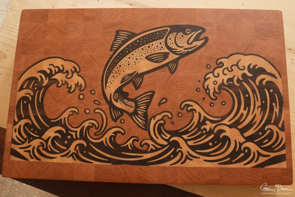 I made the files available to purchase for those of you have a CNC and want to tackle this project: CNC Files for the Rainbow Trout Cutting Board.