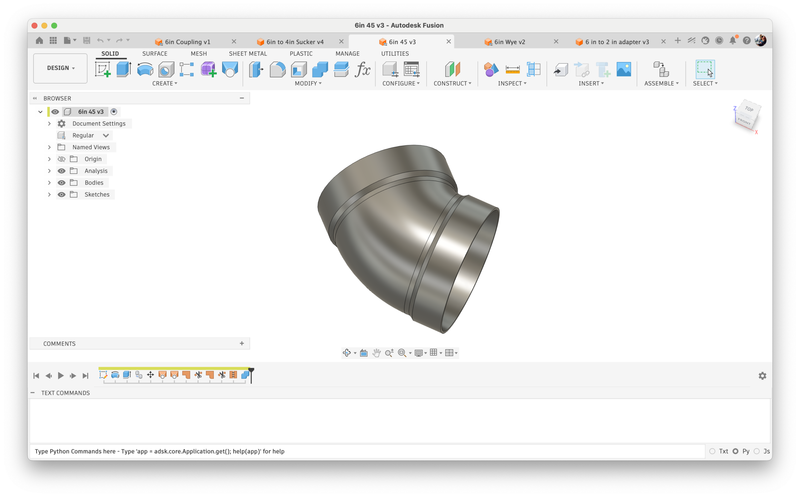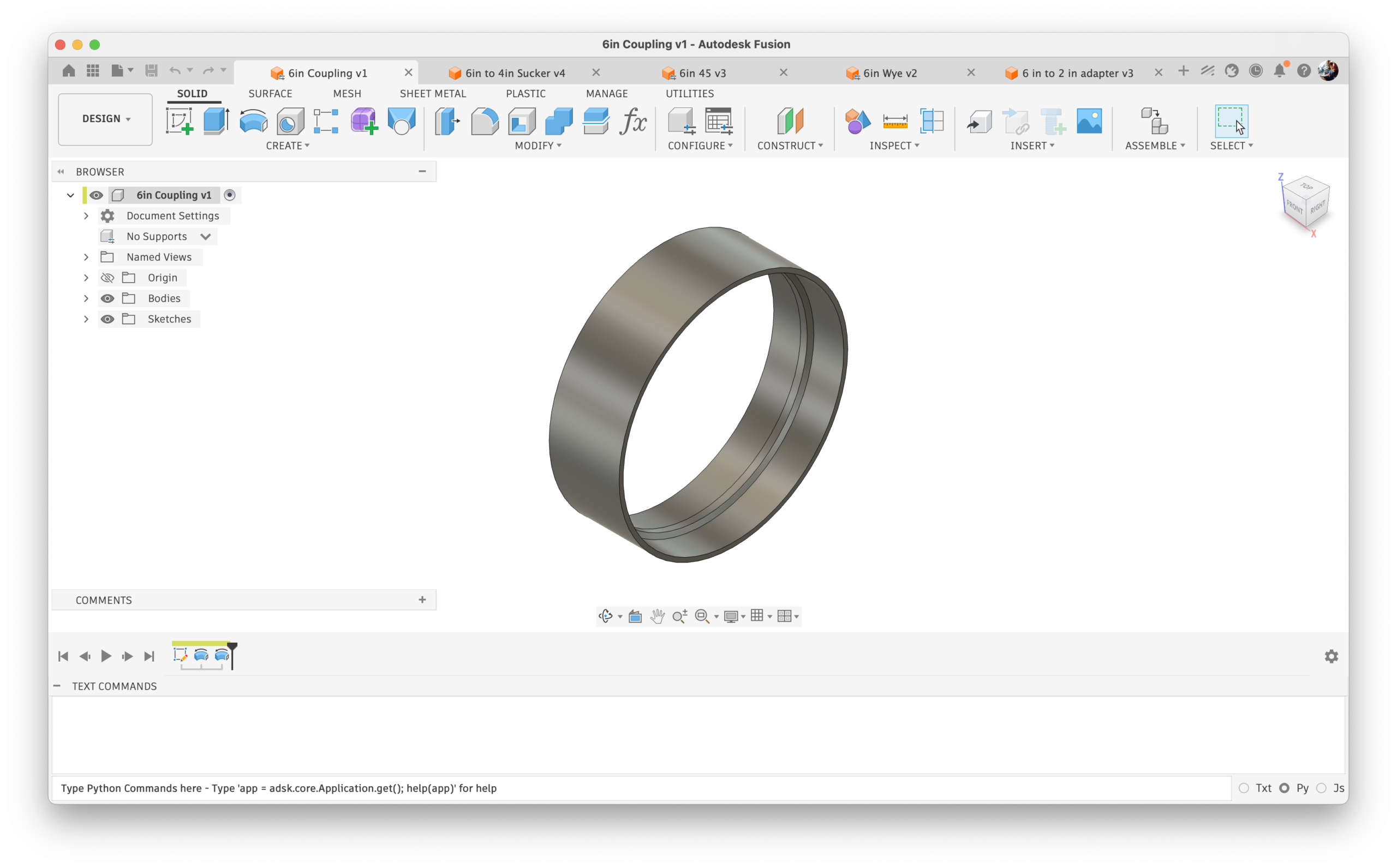 Various 6 inch dust collector tubing couplings that I designed in Autodesk Fusion, specifically for 6″ Sewer and Drain PVC that people typically use in DIY dust collector setups. I discovered it is cheaper to print your own couplings instead of buying them.