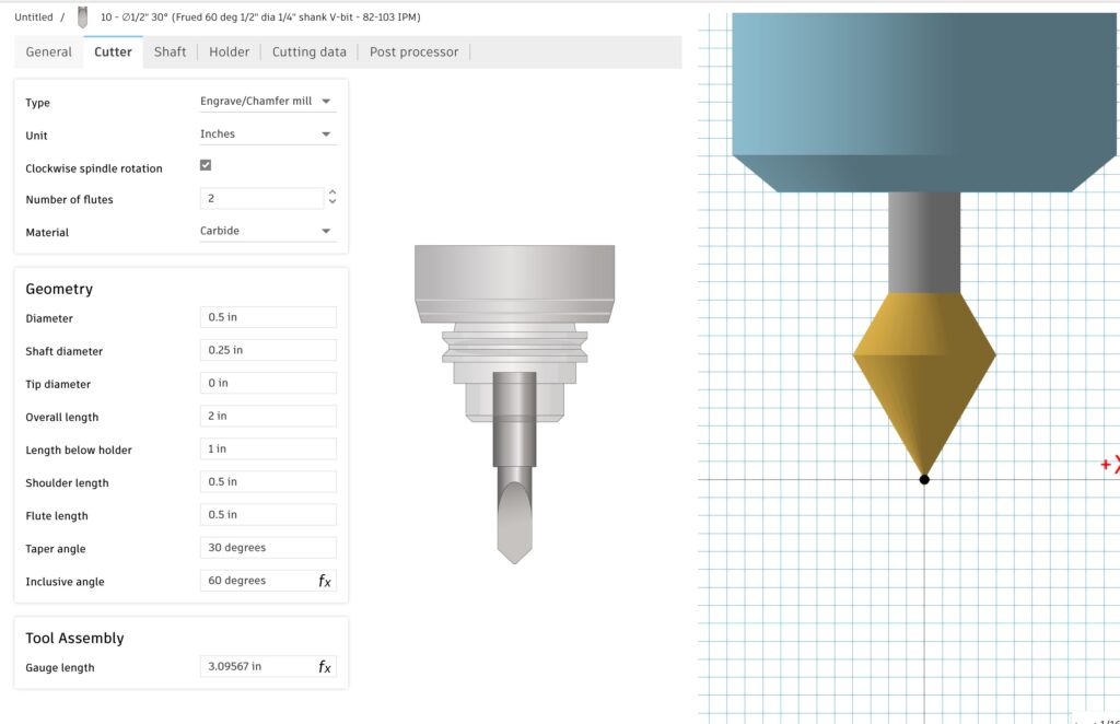 Pure V-bits, like shown below, will not work (toolpath generation will fail) unless you set a Tip Diameter. You can use a really small Tip Diameter, like 0.001″, to get it to work, and it shouldn’t affect the inlay.