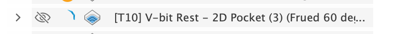 The default order would be: V-bit, Clearance Bit, V-bit. This causes an unnecessary tool change back to the V-bit at the end. However, moving the last “V-bit Rest” operation above the Clearance operation will cause it to re-calculate and not be correct (it’d try to remove everything the clearance should be doing). To solve this, you can right click on the V-bit Rest operation and check Protect. It will show “Protected” via a lock icon. You can then drag the protected toolpath above the Clearance operation. NOTE: if you do this, and you change something that makes the toolpaths need recalculation, you will have to move it back and unprotect it.